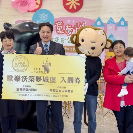 嘉義基督教醫院早療中心長期致力於支持遲緩兒童的發展,透過多元專業的服務,在嘉義建立七處偏鄉關懷的據點,提供早療家庭們所需要的資源與關懷,嘉義基督教醫院劉中賢副院長表示,很感謝此次由新悦花園酒店與大林歐樂沃築夢城堡攜手發起公益活動,不僅以專款專戶來資助嘉義基督教醫院早療中心,更免費招待慢飛天使入住新悦親子主題房體驗,也讓孩子們可以到擁有迪士尼風格的歐樂沃築夢城堡遊玩,讓孩子們成為第一批進入遊玩的遊客,透過一系列的親子活動,讓孩子們在充滿愛與歡樂的氛圍中自信成長,勇敢追夢,感謝市府及在地優質的企業,協助更多孩子擁有更歡樂的童年。