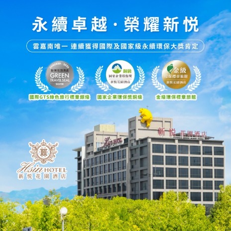 由台灣永續能源研究基金會(TAISE)首度舉辦的「台灣觀光永續獎」,邀請全台觀光產業業者,藉由永續經營管理,讓觀光產業成為推動經濟發展、環境保護和促進社會福祉的積極力量,新悦致力推動綠色旅遊,以實際行動力陸續取得GTS二星認證(Green Travel Seal)、金級環保標章旅館、國家企業環保獎銅級獎,再到「2025台灣永續旅宿獎銀獎」與「全台最美飯店」二大榮耀,多重獎項肯定下,成功讓新悦成為業界標竿的典範,新悦花園酒店執行董事劉映雪表示:「連續五年獲選最美飯店,並首度拿下永續觀光大獎,是團隊堅持『結合在地、永續經營』的成果。」新悦以嘉義文化為核心,打造富含溫度的旅宿體驗,從親子設施、粵菜融合在地食材的餐飲理念,到「實境互動體驗」等深度遊程,皆呼應永續觀光精神。