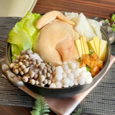 《花膠刈菜土雞鍋》,以膠質豐富的花膠搭配在地土雞,滋補暖胃