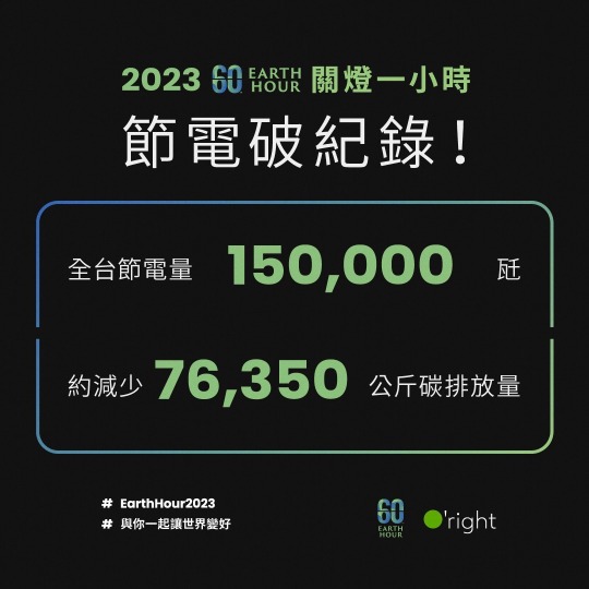 2023共有497間企業響應「關燈一小時」活動,大家隨手關燈一小時。